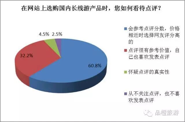 《報告》有關點評對國內長線游用戶購買決策影響的調查顯示,60.8%的受訪者表示他們會參考點評分數,價格相近時選擇網友評分高的產品,另有32.2%的受訪者表示點評非常有價值并且自己也喜歡發表點評。同程旅游研究人員認為,隨著在線旅游市場滲透率的逐漸提升,參考點評選購旅游產品正在成為在線旅游用戶的標準決策過程,而對于行程長、費用相對較高的國內長線游和出境游等長線游產品更是如此。