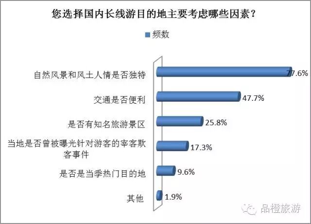 獨特的自然風景和風土人情是人們選擇國內長線游目的地的首要考慮因素