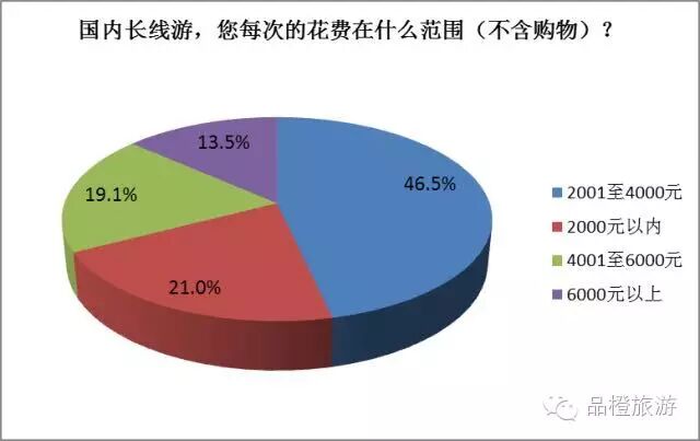 近半數受訪者國內長線游花費范圍在2001至4000元之間